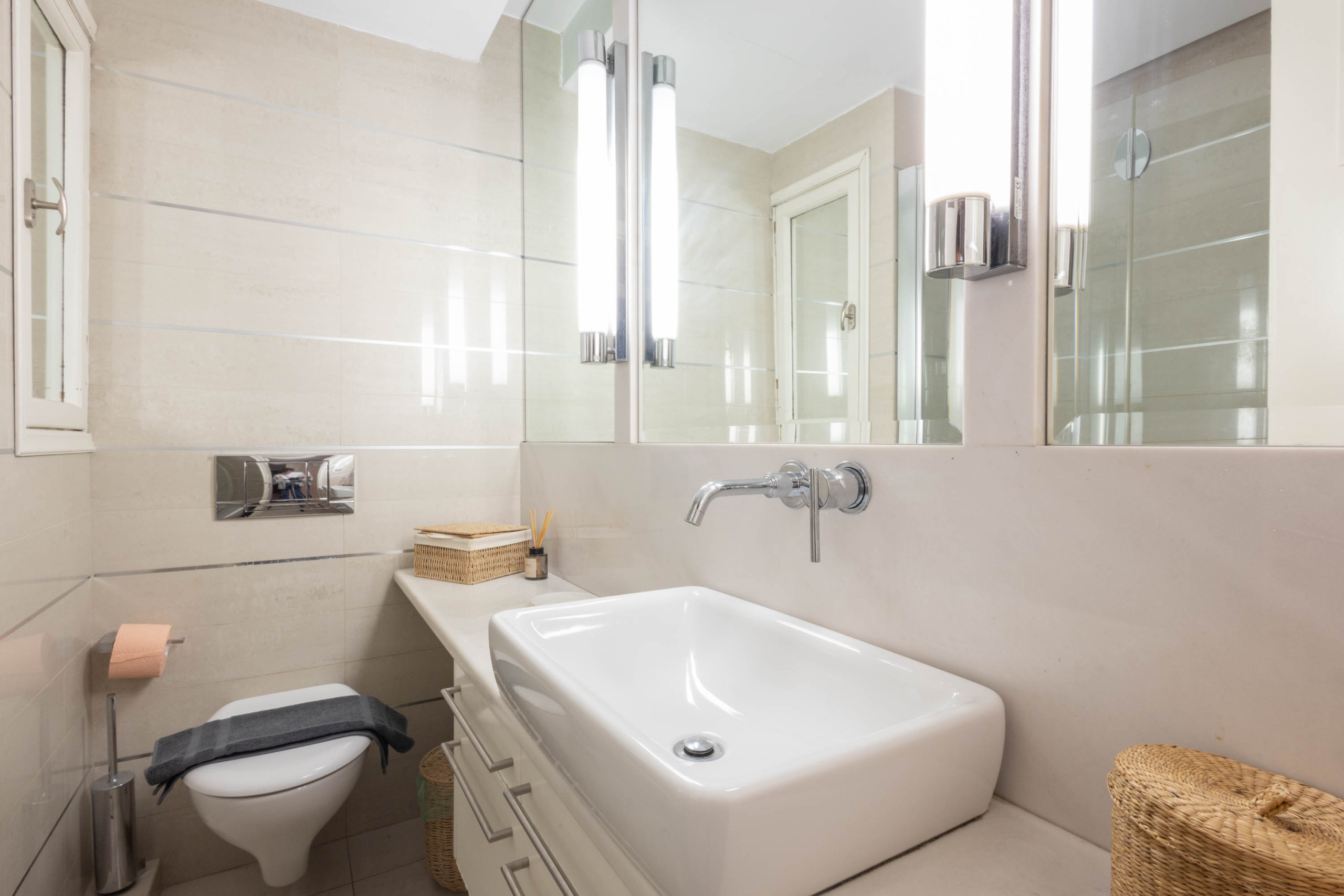 L'appartement entier est entièrement climatisé tandis qu'il y a aussi une chaudière pour vous fournir de l'eau chaude 24h/24.
